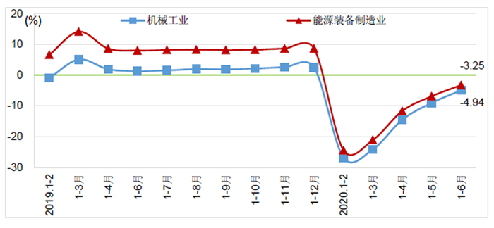 受疫情影響,當前機械工業生產運行遭受嚴重沖擊,上半年機械工業中能源裝備制造業累計實現營業收入16370.77億元,由去年同期同比增長7.99%轉為同比下降3.25%,隨著復工復產的有序推進,降幅較1-5月收窄。