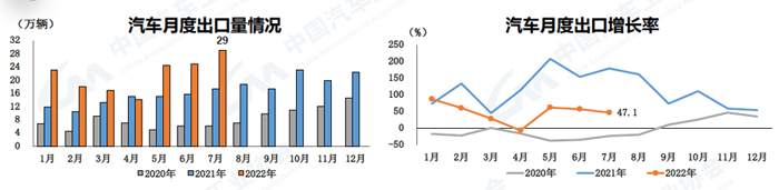1-7月,汽車企業(yè)出口同比增長(zhǎng)50.6%,全年出口將有望超過240萬輛,符合年初預(yù)期。