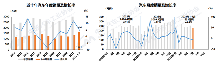 2024年7月汽車工業產銷環同比均下降