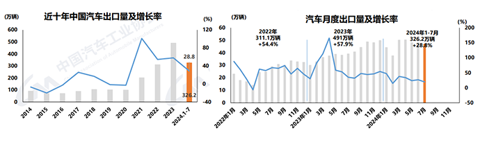 1-7月,汽車出口326.2萬輛,同比增長28.8%。分車型看,乘用車出口273.8萬輛,同比增長30.1%;商用車出口52.4萬輛,同比增長22.6%。