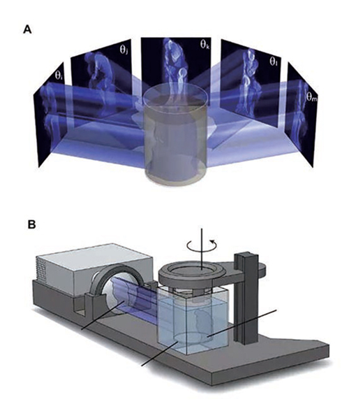 (3)CAL新型3D打印的靈感來源。基于CAL的新型3D打印技術的靈感來自醫學領域的計算機斷層掃描技術(CT),CT掃描從各個角度將X射線或其他類型的電磁輻射投射到體內,通過分析傳輸能量的模式來揭示物體的幾何形狀。
