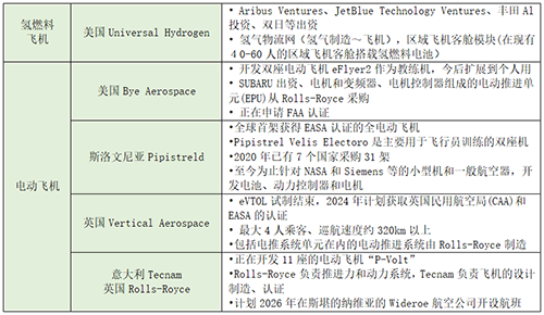 表1 氫燃料飛機和電動飛機領域的飛機風險企業發展趨勢