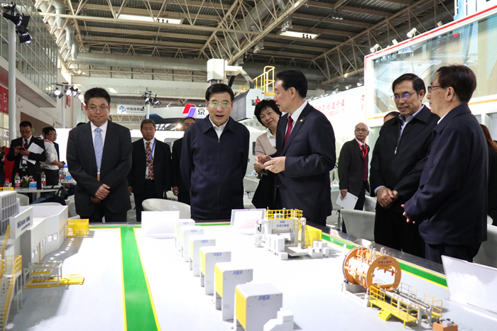 工業和信息化部部長苗圩攜工信部辦公廳、規劃司、科技司、裝備司及產業發展促進中心相關負責人前來參觀。
