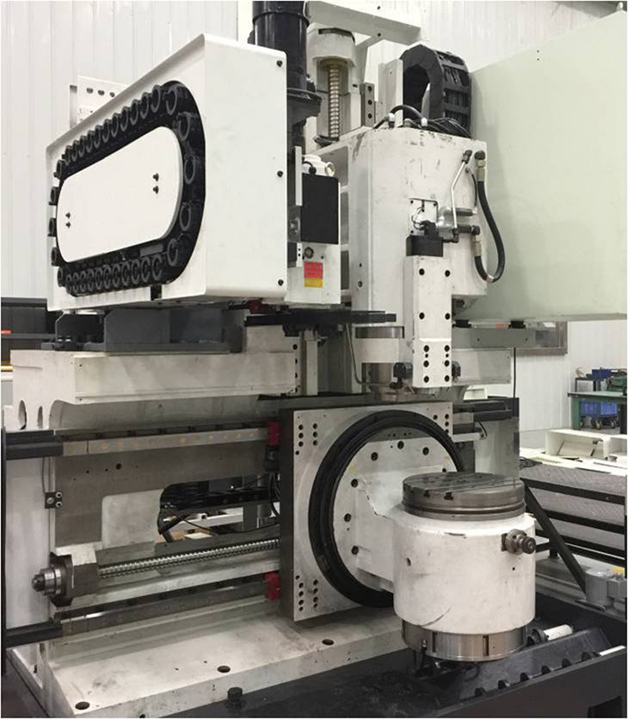 懸臂式結(jié)構(gòu)、直驅(qū)技術(shù)的雙轉(zhuǎn)臺(tái);武漢華中848CM數(shù)控系統(tǒng);核心功能部件φ400mm高速銑車復(fù)合BC雙軸轉(zhuǎn)臺(tái)自行研發(fā)制造;滾珠絲杠:陜西漢江;滾動(dòng)導(dǎo)軌:廣東高新凱特;鏈?zhǔn)降稁?kù):臺(tái)灣產(chǎn)品;銑主軸:歐系品牌。機(jī)床工作臺(tái)直徑φ400mm;銑削主軸轉(zhuǎn)速20000r/min;車削主軸轉(zhuǎn)速1500r/min。