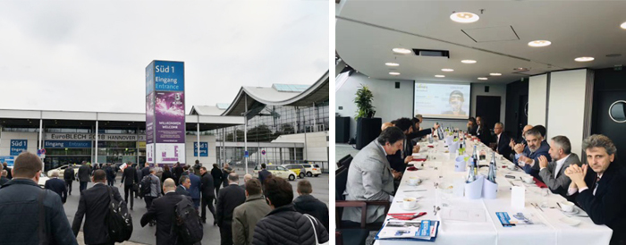 2018年10月23-26日,第25屆國際金屬板材加工技術展覽會(EUROBLECH)在漢諾威國際展覽中心舉辦,由王黎明秘書長帶隊的中國機床工具工業協會出訪團一行5人參加了該展會。展會期間,機床工具協會出訪團組深入考察了展會,并應邀參加了由意大利機床、機器人和自動控制設備制造業協會舉辦的商務交流活動,探討了相關合作事宜。