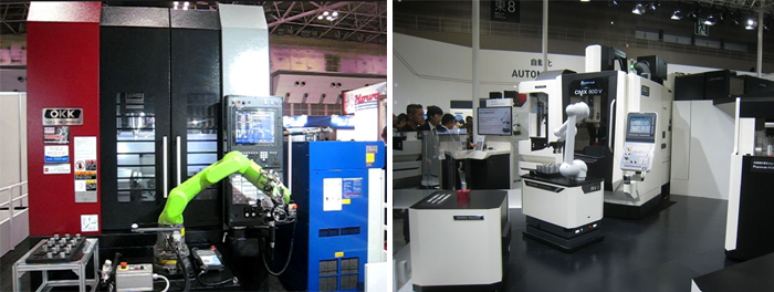 展會上還有很多車床、加工中心等與關(guān)節(jié)機器人的配搭展示,預(yù)示著今后隨著機床加工能力的擴展,尤其是五軸加工中心的普及,加之夾具技術(shù)的發(fā)展,單機也會在自動化領(lǐng)域發(fā)揮越來越強大和獨特的作用。