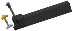 三菱公司的模塊化切槽刀具GY采取了獨(dú)特的夾緊方式,通過(guò)這樣的改進(jìn),使得GY切槽刀在加工時(shí)的高頻振顫、振擺均得以消除,與以往模塊型刀具相比,加工表面的粗糙度等級(jí)得以提高。另一方面,GY系列與一體型槽加工刀具可以實(shí)現(xiàn)幾乎同等的剛性。