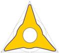 圖1是廈門金鷺在本屆展會(huì)展出的專利車刀產(chǎn)品,其中左2和左3分別是刀片的每面帶有3個(gè)刀尖的55°刀尖角和35°刀尖角的車刀(圖2)。以前這兩種刀尖角的車刀都是每面只有2個(gè)刀尖角,35°刀尖角的V型還由于刀片特別狹長(zhǎng),燒結(jié)時(shí)的變形不太容易控制而廢品率比較高。廈門金鷺的新產(chǎn)品讓D型刀尖和V型刀尖都增加了50%的刀尖,這無(wú)論是對(duì)于提高用戶的經(jīng)濟(jì)效益,還是對(duì)改善廈門金鷺的產(chǎn)品質(zhì)量控制,都大有裨益。
