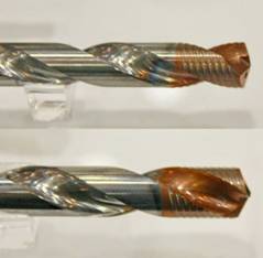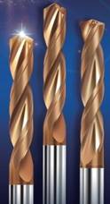 株洲鉆石推出了新的整體硬質(zhì)合金麻花鉆系列GD鉆頭(圖6),替代原來(lái)的SU鉆頭。GD鉆頭優(yōu)化了鉆尖結(jié)構(gòu),并采用了雙刃帶結(jié)構(gòu)。減少了刃口崩缺或者斷刀,提高了加工的穩(wěn)定性,保證了刀具整體的切削性能以適應(yīng)多變的客戶工況。其良好的孔加工質(zhì)量及精度在較差的工況下也能表現(xiàn)良好的切削性能。其光滑的涂層表面,能夠顯著減少切削阻力并且具有更加優(yōu)異的耐磨性能。其金黃色涂層使其得到了明顯的磨損識(shí)別效果。作為通用加工鉆頭系列,可應(yīng)用于各個(gè)行業(yè)、多種材料的加工。株洲鉆石的試驗(yàn)結(jié)果表明,新的GD鉆頭比原來(lái)的整體硬質(zhì)合金鉆頭使用壽命增加了1倍。