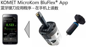 高邁特公司的MicroKom BluFlex?微調(diào)精鏜頭(圖9),是另一種帶有單獨(dú)顯示數(shù)值系統(tǒng)的產(chǎn)品。它通過(guò)藍(lán)牙技術(shù)將微調(diào)讀數(shù)在單獨(dú)的顯示器上以μ級(jí)為單位顯示,從而無(wú)論是在對(duì)刀儀上還是機(jī)床內(nèi),都能更精確、更方便地調(diào)節(jié)和讀取數(shù)據(jù)。高邁特公司介紹,最新的應(yīng)用程序可以直接通過(guò)手機(jī)進(jìn)行讀數(shù)。