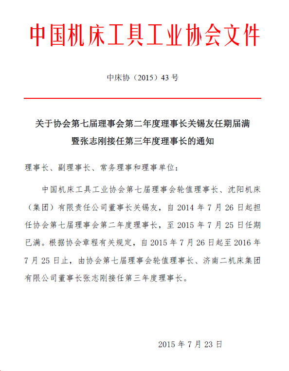 張志剛接任機(jī)床協(xié)會(huì)第七屆理事會(huì)第三年度理事長(zhǎng)