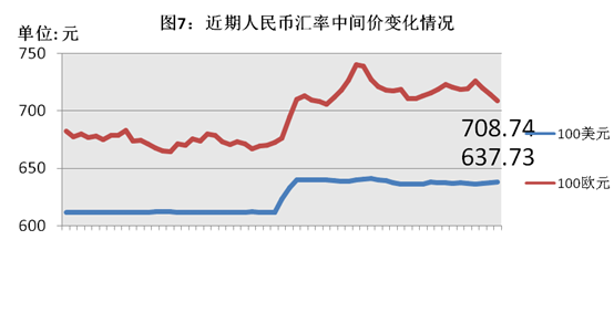 再說(shuō)匯市。811日,中國(guó)央行宣布改革人民幣兌美元匯率中間價(jià)報(bào)價(jià)機(jī)制,開(kāi)啟了我國(guó)新一輪匯率改革。期間,人民幣匯率曾面臨較大貶值壓力,但已逐步趨于穩(wěn)定。917日,國(guó)家外匯局宣布人民幣貶值壓力已經(jīng)基本釋放完畢,這標(biāo)志著新匯改已經(jīng)告一段落。圖7是今年三季度人民幣兌美元匯率中間價(jià)的變化情況,其中也顯示了人民幣兌歐元匯率的變化情況。