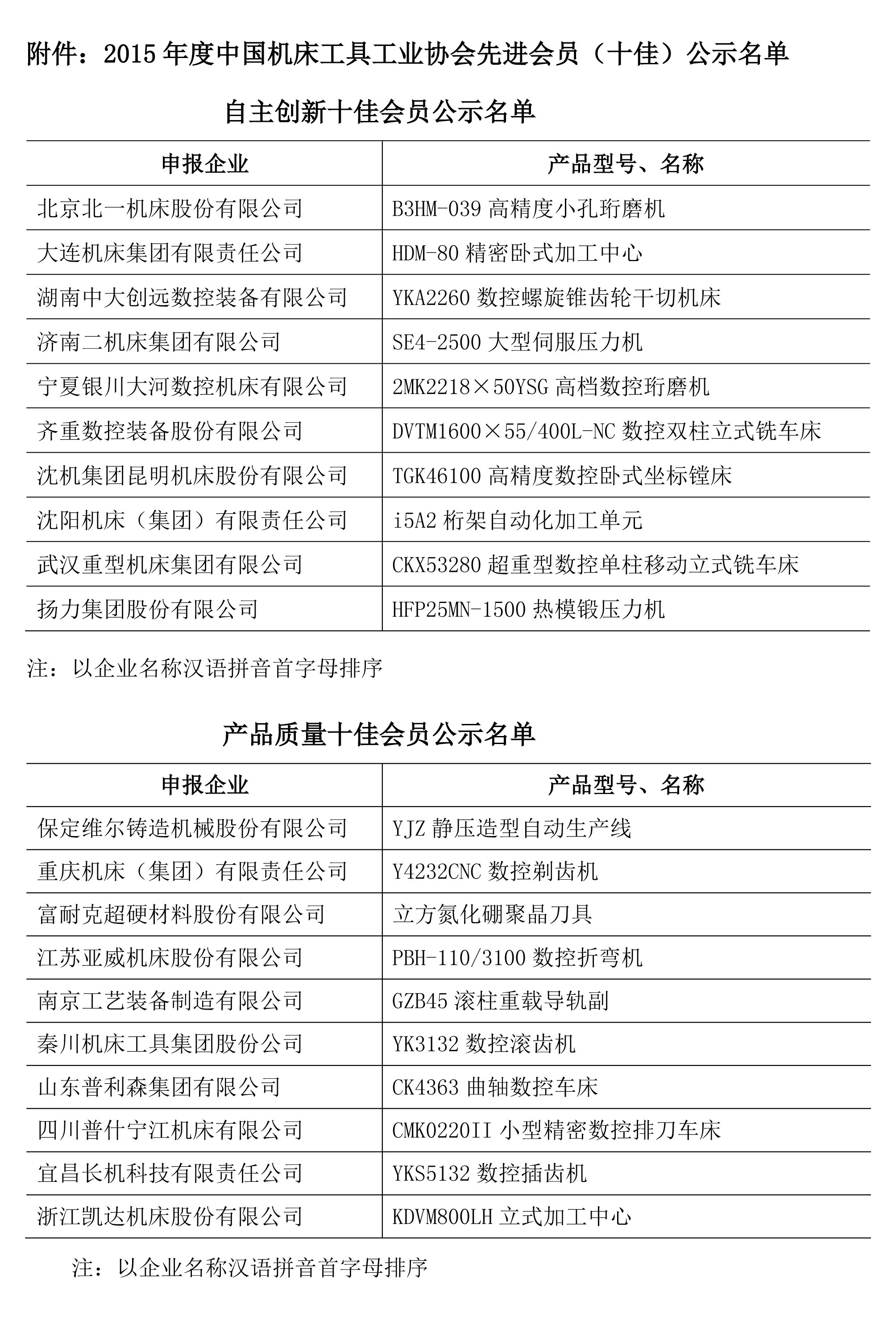 在會員企業自愿申報的基礎上,2015年度先進會員(十佳)評定工作已完成用戶應用情況核實、滿意度調查和專家綜合評審等工作程序,并產生了2015年度“自主創新十佳”、“產品質量十佳”預選獲獎企業和產品名單。根據先進會員(十佳)評定管理辦法》的規定,現將預選獲獎名單予以公示。公示期自2016324日至42日,任何單位或個人對公示名單有異議,請于公示期內以書面或電子郵件的形式提出意見。