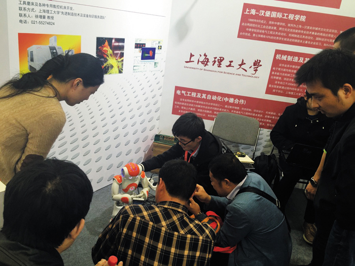 中德學院代表展出的“五軸聯動數控工具磨床”是工具制造業的高端數控加工專用機床,可一次完成各種復雜形狀的刀具加工。該項目為“上海市重大技術裝備研制專項”項目,由上海理工大學、上海工具廠有限公司合作研制完成。展出中吸引了諸多觀眾前來咨詢,與多家企業初步探討了合作意向。