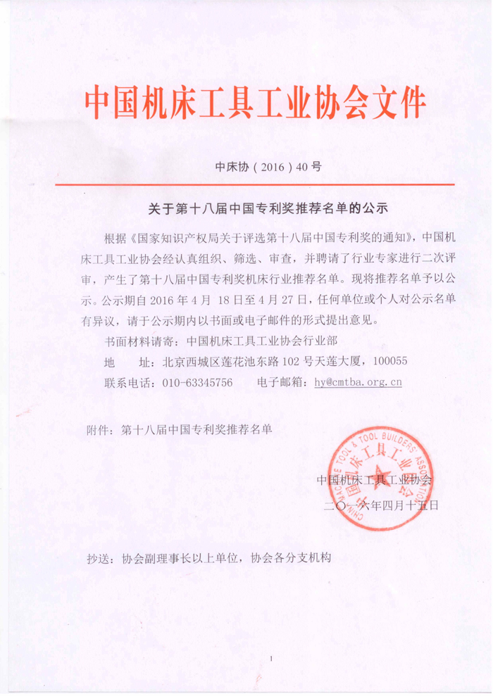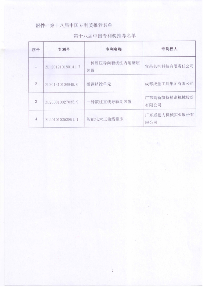 【協會文件】 關于第十八屆中國專利獎推薦名單的公示