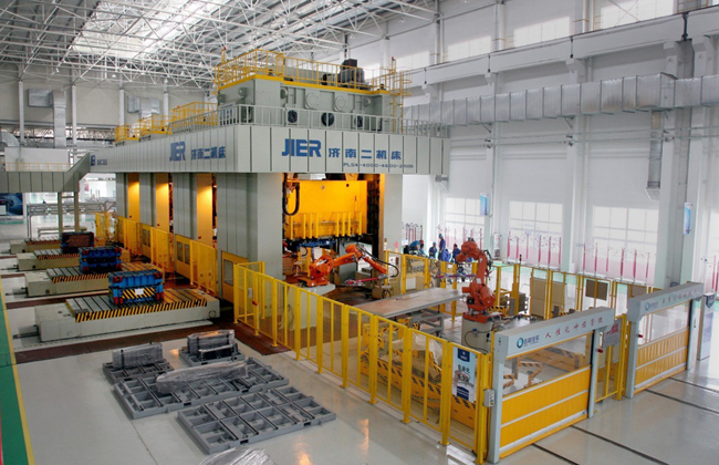 截至目前,濟南二機床為吉利集團提供了23條大型沖壓生產線、共計124臺不同規格的沖壓設備,包括JIER單臂線、連續運行的機器人線等產品,為適應吉利集團不同車型需要提供了個性化訂制服務。