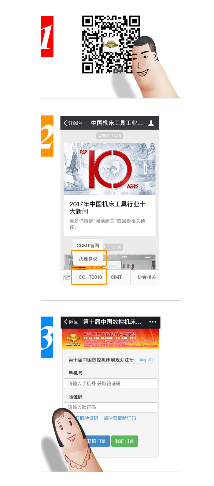 進(jìn)入CCMT官網(wǎng):www.ccmtshow.com,點(diǎn)擊進(jìn)入“觀(guān)眾登記”,按要求填寫(xiě)相關(guān)表格即可。