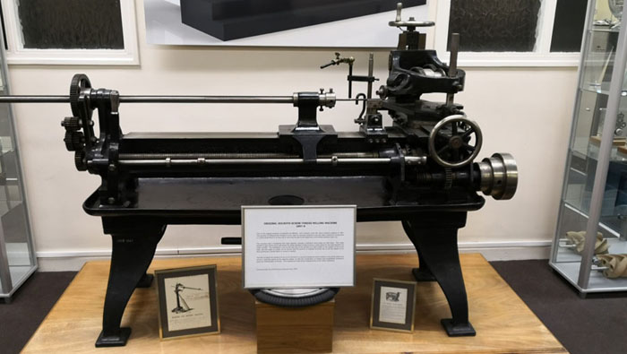 1897年,PTG公司發明了螺紋銑削工藝,設計、制造了該類型的第一臺機床,并申請了專利,現在在PTG公司還陳列著這樣一臺機床(見下圖)。PTG自1906年開始生產蝸輪蝸桿及螺紋磨床和銑床。