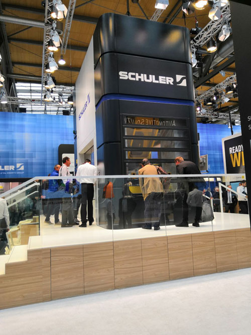 (3)自動上下料機構。幾乎所有的知名成形設備制造商都展出了各自的上下料機構以及原材料庫。