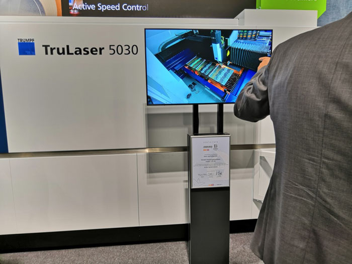 該展品配置了通快公司全球首次展出的切割速度自動調節功能(Active Speed Control)。該功能能夠探測切割材料的質量,實時分析和控制切割參數,從而達到最佳切割效果。