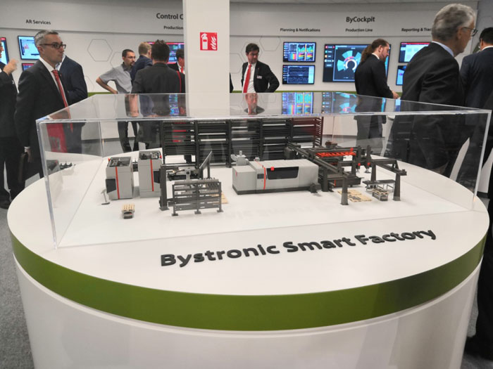 4、工業4.0實踐取得快速發展。展會主題“Step into the digitalreality(進入數字化時代)”蘊含著工業4.0的概念。各大展商配合展會主題展示了他們對工業4.0的理解和實踐。通快展示的TruLaser Center 7030激光切割機床,具有自學習功能,以及企業內部物流解決方案Track&Trace;百超展出的智能工廠模型;天田展示的V-factory;MAZAK的i-Smart factory等,展現了行業在工業4.0實踐中取得的最新成果。