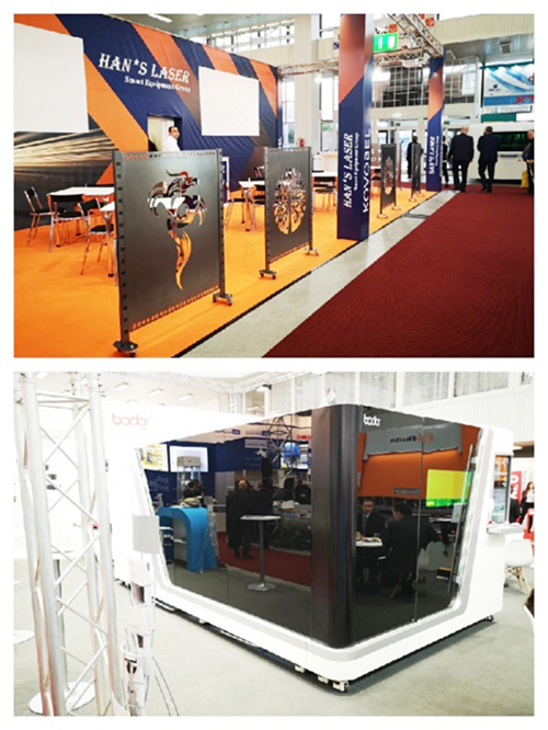 本屆展會激光成形機床參加比較積極,我們在現場看到了兩家占地比較大的企業。一家是在大陸知名度較高的深圳大族激光,雖然沒展出實物設備,但其中國范兒的裝潢設計吸引了不少眼球;另一家是濟南邦德數控機床有限公司(Bodor),該公司展出了一臺激光切割機床S2040,主要參數為:最大聯動速度200m/min,最大加速度4G,定位精度0.05mm,重復定位精度0.03mm。主要技術參數與周圍國際品牌的產品基本相同,華麗的外觀,令觀眾頻頻駐足。