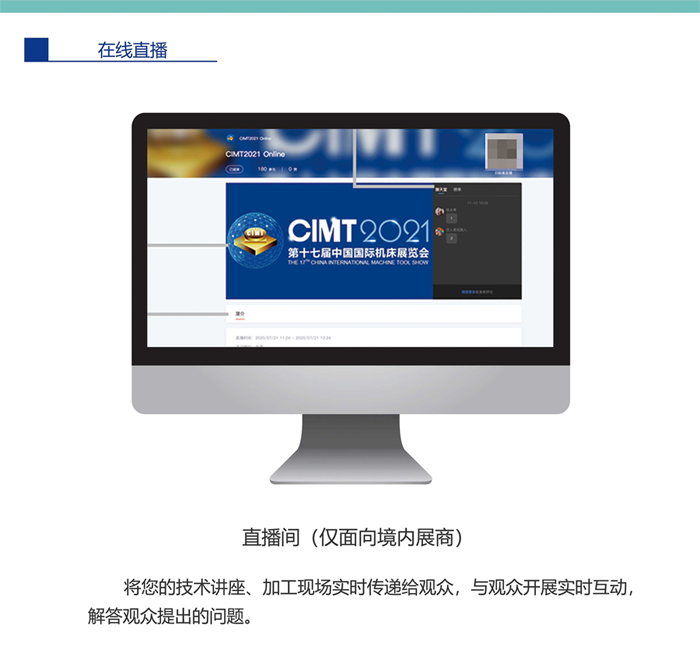 為適應行業數字化轉型升級需求,提升觀眾的觀展體驗,第十七屆中國國際機床展覽會(CIMT2021)首次推出配套的線上數字展會。作為線下實體展會的補充和延伸,在CIMT2021展會開幕前和舉辦期間,線上展將配合進行有針對性的預熱和宣傳,并將在線下展結束后的4月18日正式開幕,展期1個月。