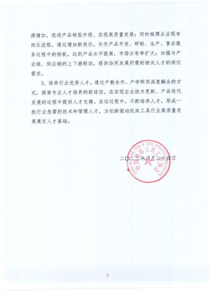 中國機(jī)床工具工業(yè)協(xié)會倡議書