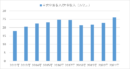 [注:2012-2018年為主營業務收入數據,2019-2021年為營業收入數據。]
