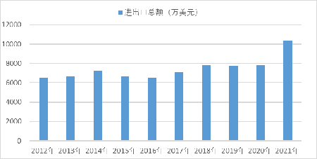 7  2012-2021年機械工業進出口總額