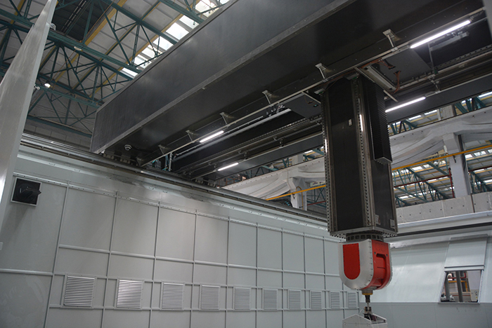 7.國內首臺大行程超高空間定位精度整型部件加工機床:創新采用碳纖維復合材料制造金屬切削機床龍門橫梁移動部件,研制了用于四代機整型部件批產加工的高空間定位精度高端裝備,在9m×5m×1.7m范圍內空間精度達到2μ/m3,達到國際領先水平,滿足了飛機裝配過程中對外形公差、對縫間隙和階差等裝配特征的高精度要求。