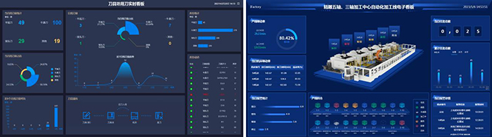 功能模塊:車間總覽、加工任務看板、車間生產能力統計、機床工時看板等。