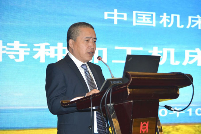 在專題報告環節,全國特種加工機床標準化技術委員會主任委員吳強作了題為“標準賦能企業高質量發展”的報告,西安航天發動機有限公司副總工藝師宋國新作了題為“特種加工技術在液壓動力制造領域得應用及展望”的報告,廣州數控設備有限公司副總工程師朱孔峰介紹了“直驅技術在特種加工機床上的應用”。