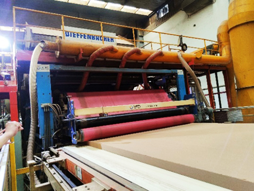 在三威公司接待團隊的陪同下,代表團一行首先參觀了生產現場,聽取了生產工藝流程的詳細介紹。看到了三威公司最具現代規模、也是國際最先進的連續平壓寬幅面中密度纖維板生產線,了解了其設備、技術和產能情況。