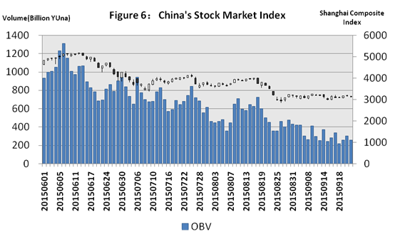First, the stock market. During March to June this year, the Shanghai Composite Index rose up to 70%, and the stock market bubble accumulated rapidly. Figure 6 is the change of Shanghai Composite Index in two and three quarters. The figure shows that since mid-June, the stock market had experienced three adjustments. The first two rounds of adjustments did not cause international influence, but in late August, the third round of adjustments had a global impact. The Chinese government took effective measures to provide liquidity to the market through various channels to prevent the occurrence of systemic financial risks. To early September, the adjustment of stock market has been generally in place entering the stage of self-repair and self-adjustment.